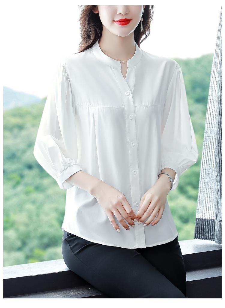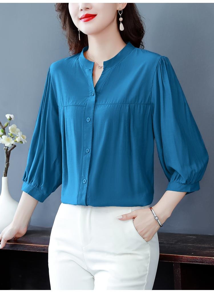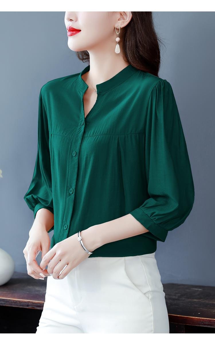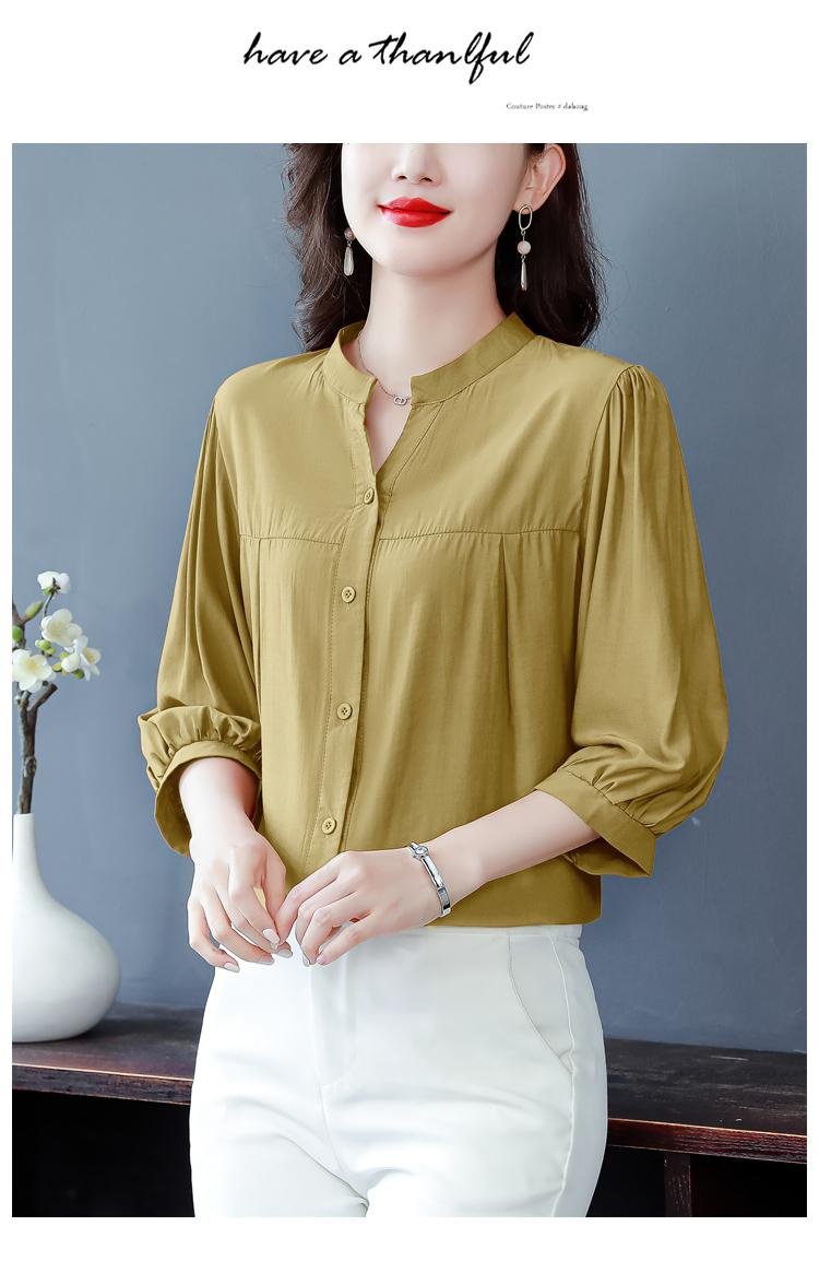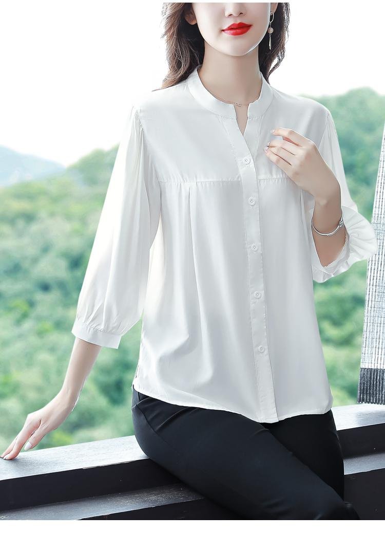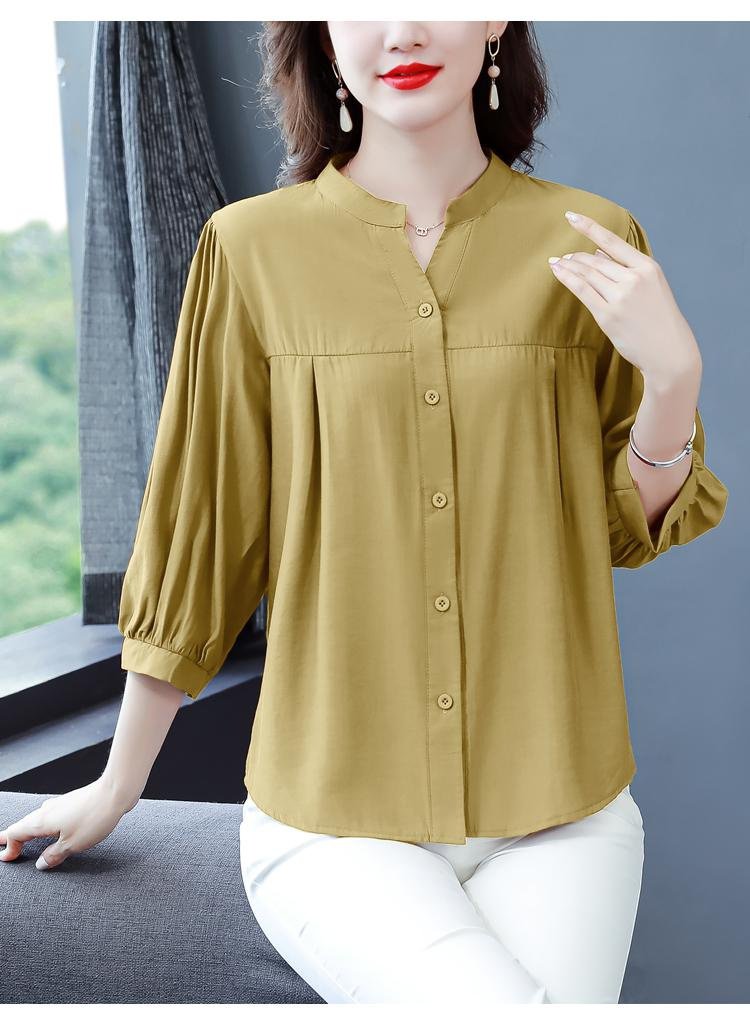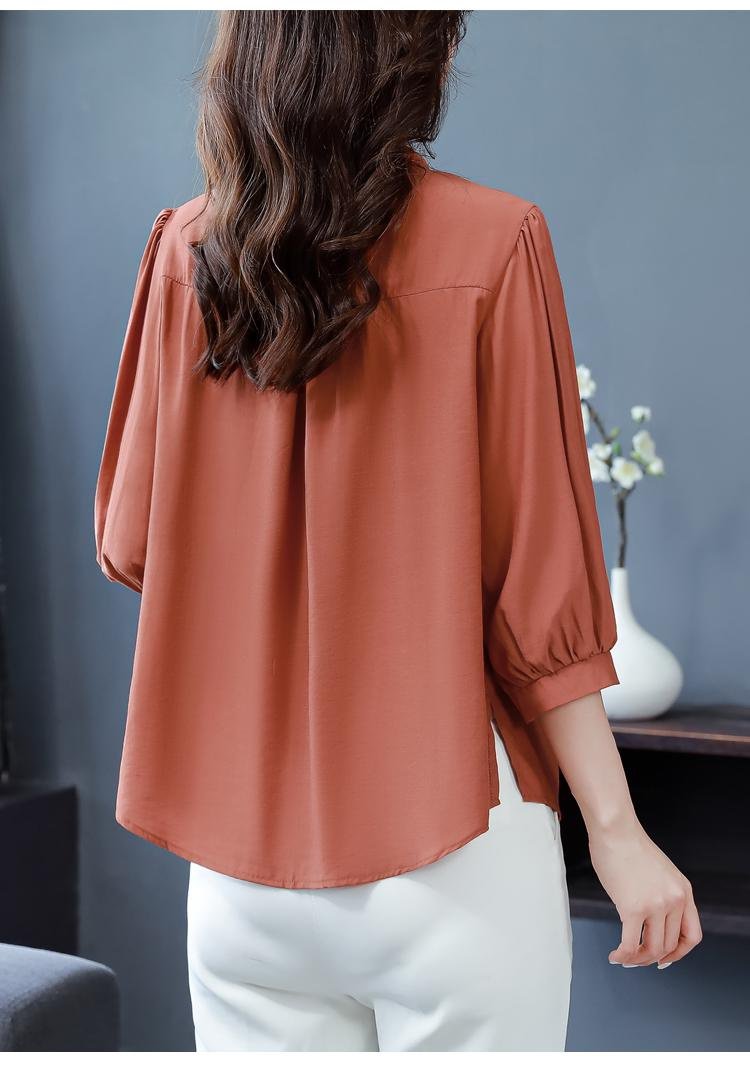 リネン混シャツ レディース 上品 ゆったり 半袖/七分袖 体型カバー ブラウス