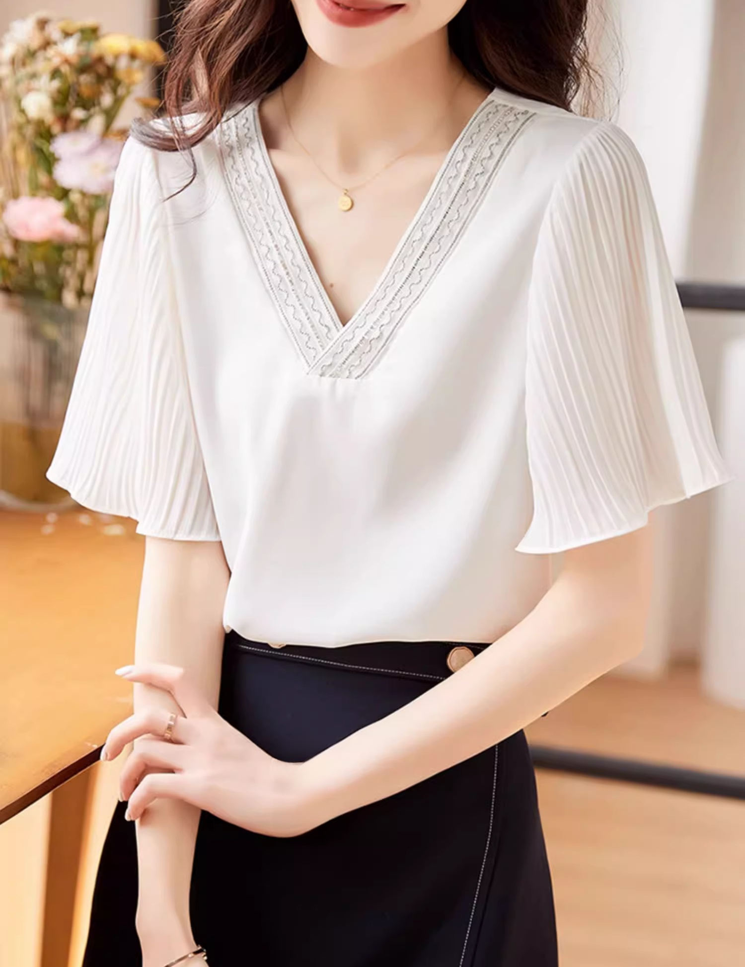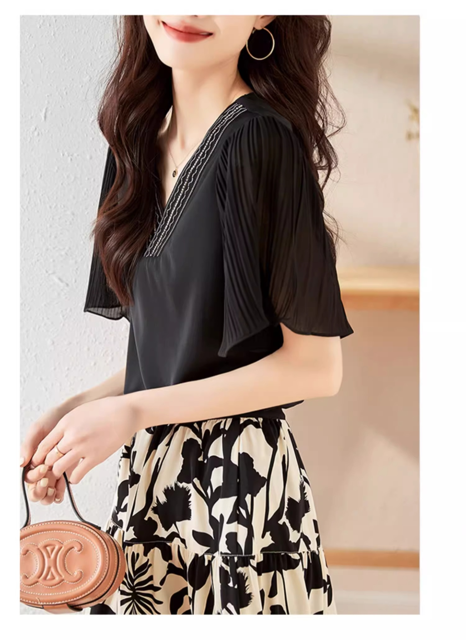 春夏レディース半袖ブラウス ゆったり体型カバーシャツ