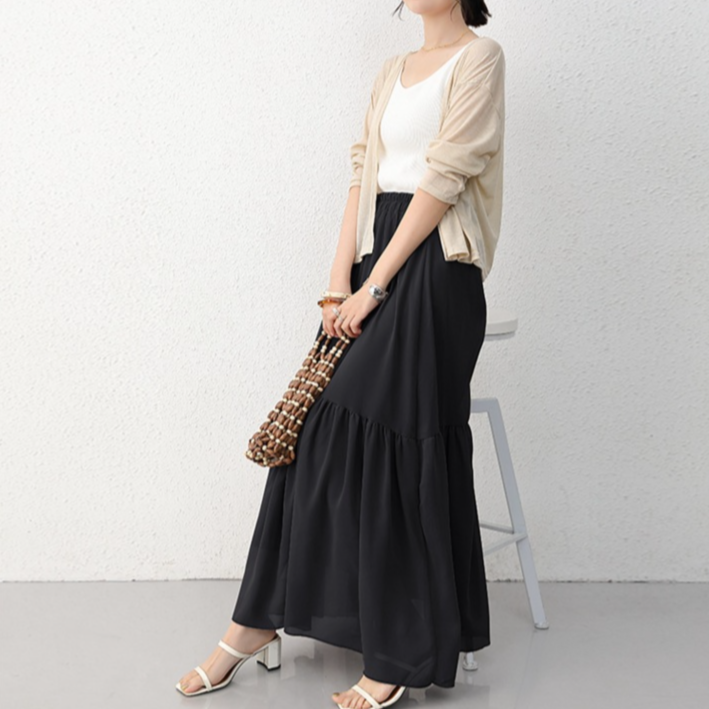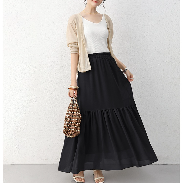 春夏ハイウエストカジュアルケーキスカートAラインスカート